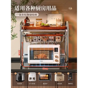 新款中古风微波炉置物架厨房台面烤箱支架多功能储物电饭煲收纳