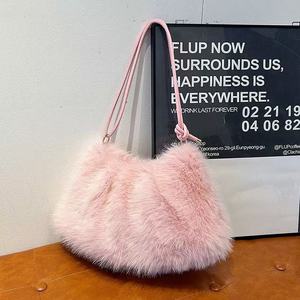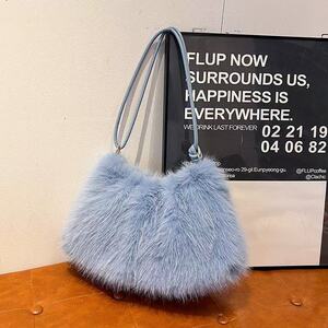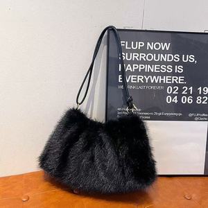 网红新款手提毛毛包秋冬欧美复古风时尚单肩包高级感日常百搭包包