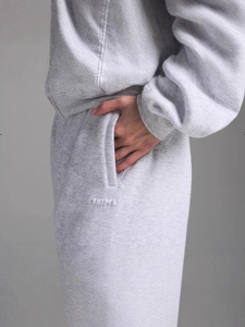 浅灰色-束脚裤/浮雕字母版(380g毛圈棉微抓绒)