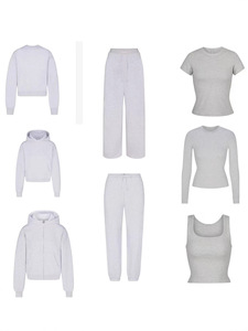 skims卡戴珊灰色系列抓绒毛圈棉外套卫衣双腰头裤子休闲运动套装