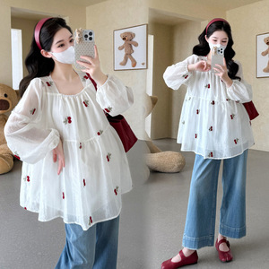 2025秋季新款孕妇韩版长袖刺绣甜美气质减龄娃娃衫上衣