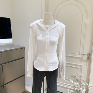 2025秋季新款拉链针织开衫连帽外套紧身收腰薄款瑜伽卫衣