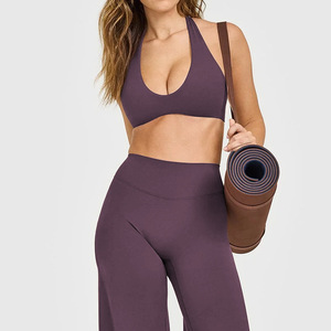 跨境裸感带胸垫瑜伽健身专用运动内衣女普拉提速干挂脖美背文胸