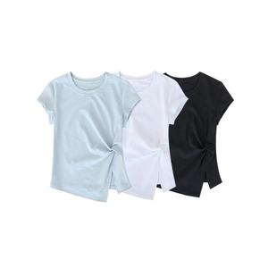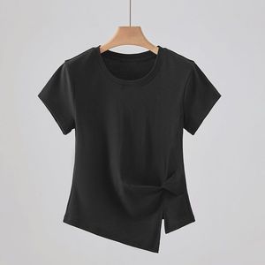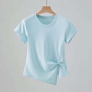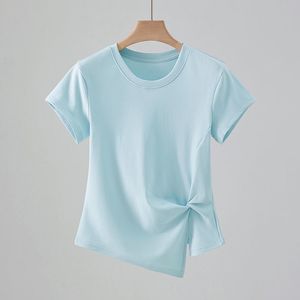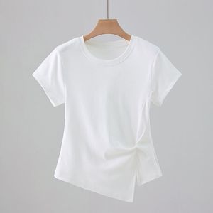 法式减龄圆领正肩短袖T恤女夏季修身显瘦设计感褶皱百搭气质上衣