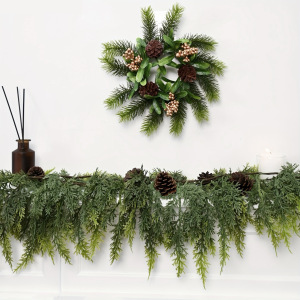 跨境新款圣诞节诺福克仿真藤条手感料软胶门挂装饰品楼梯桌面装饰