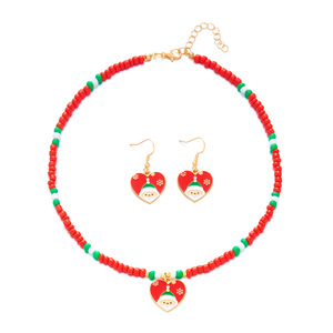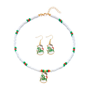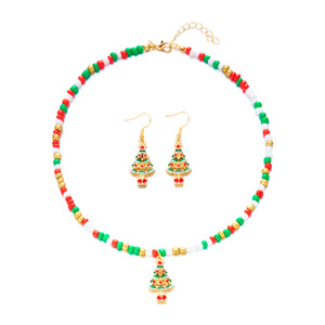 亚马逊热销款圣诞节耳环创意时尚滴油圣诞树雪花吊坠米珠项链套装