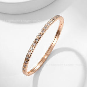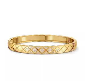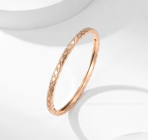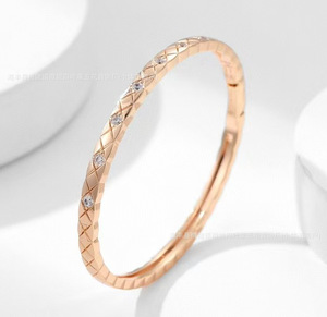 小香风coco菱格纹镶钻手镯精工CNC镀18k玫瑰金轻奢小众高级感手环