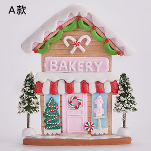 零售批发圣诞节装饰品创意新款圣诞雪屋软陶泥圣诞房子装饰品摆件