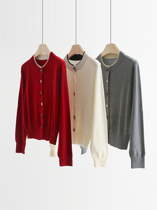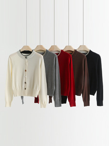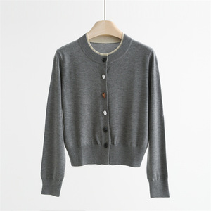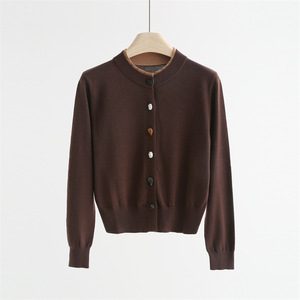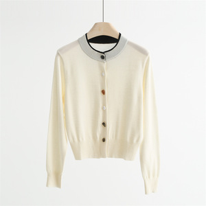 QTT-9003#圆领撞色仿石头纽扣开衫