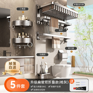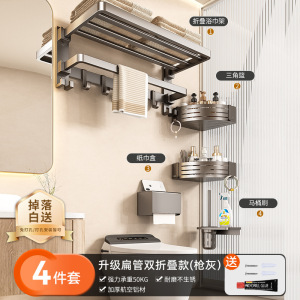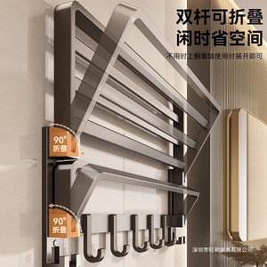 py毛巾架卫生间免打孔毛巾挂杆浴室厕所浴巾架毛巾一体置物架