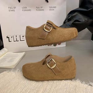 内增高厚底勃肯单鞋女外穿2025懒人一脚蹬皮带扣包头休闲单鞋批发