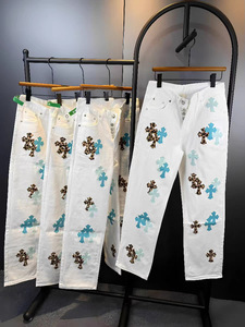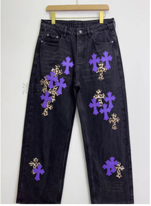 CH十字架水洗牛仔裤男款贴皮刺绣宽松直筒克罗芯牛仔裤批发代发