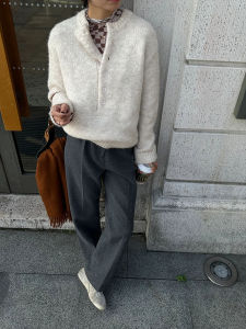 法式复古半开领毛衣女装秋冬软糯加厚宽松慵懒风高级感针织衫上衣