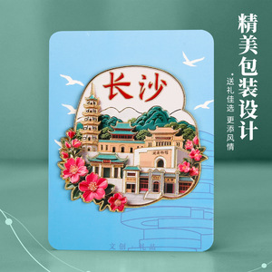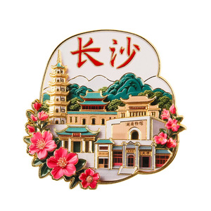 长沙金属冰箱贴文创城市地标磁吸贴景区岳麓书院潇湘阁磁贴纪念品