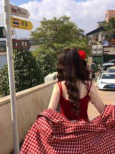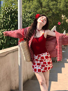 红色格子长袖衬衫女秋季防晒外套慵懒风宽松显瘦衬衣气质开衫上衣