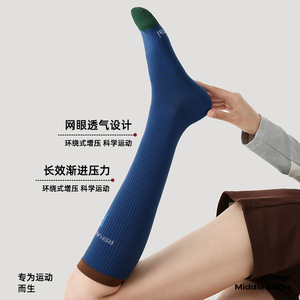 Renaissance运动压力小腿袜子女健身压缩袜普拉提瑜伽骑行长筒袜