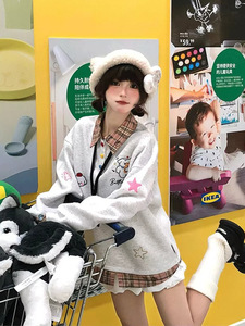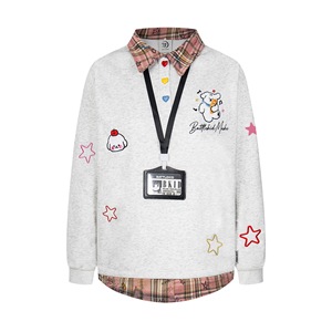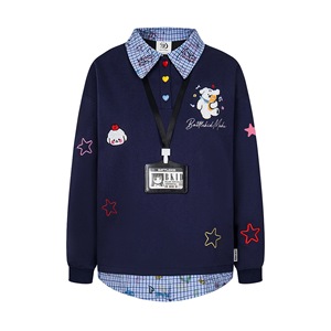 小狗刺绣复古港风拼接假两件情侣卫衣百搭宽松短袖POLO叠穿上衣潮