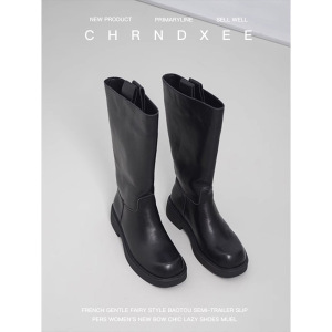 牛皮版~厚底直筒靴不过膝小个子长靴黑色显瘦胖mm宽筒骑士靴