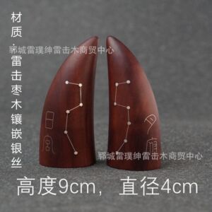 雷击枣木【镶银六七星日宫月府】道家圣杯 筊杯 掷杯手工开槽镶嵌