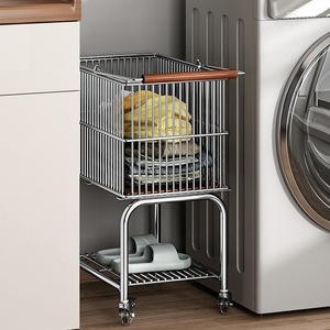中古风收纳小推车置物架家用脏衣篮卫生间浴室衣服收纳筐洗衣篮子