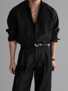 纹理感休闲长袖衬衫男士2025年新款复古轻熟风竖条纹设计感衬衣潮