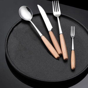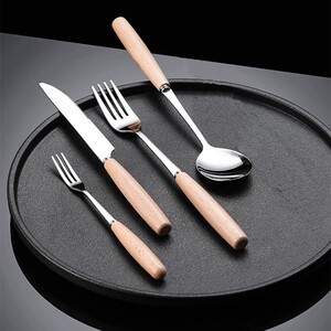 新式不锈钢西餐刀叉甜品勺 木手柄刀叉勺餐具套装工厂自产自销