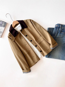 Z~H女装 早秋新款撞色翻领斜纹棉夹克时尚百搭休闲短风衣外套