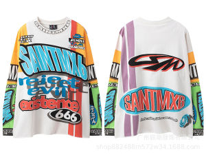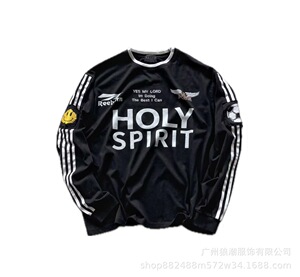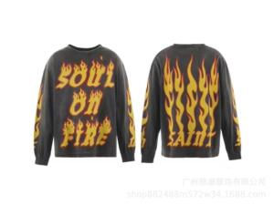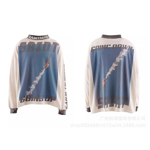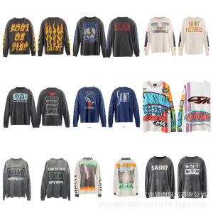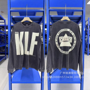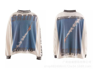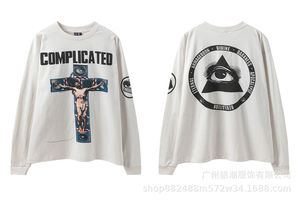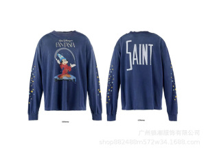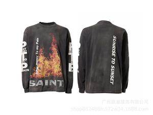 美式复古SAINTMICHAELICON潮牌人像破坏套男女做旧休闲长袖集结地
