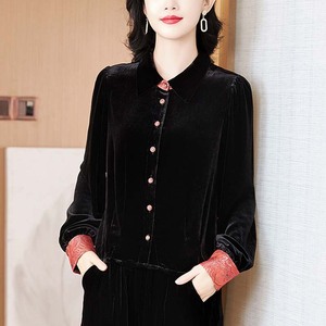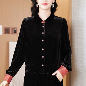 高端真丝金丝绒上衣高贵洋气改良国风女士衬衫秋季新款桑蚕丝衬衣