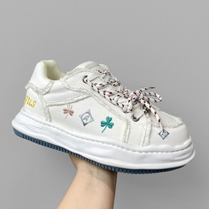 隐形7CM增高女鞋子秋季百搭休闲黑色板鞋情侣厚底时尚刺绣溶解鞋