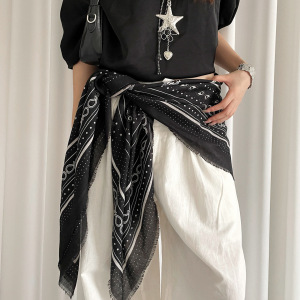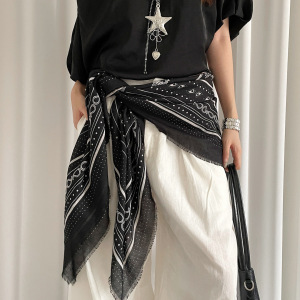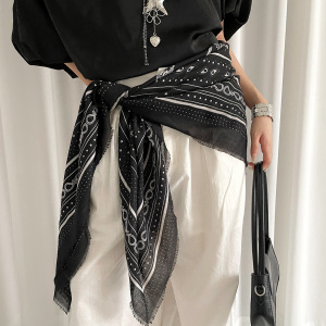 复古黑色印花屁帘丝巾女韩系慵懒风薄款披肩小众系脖围巾配饰腰带