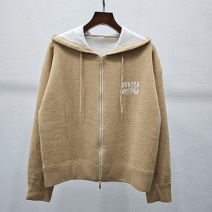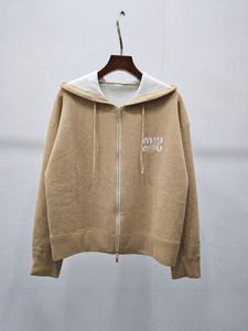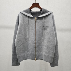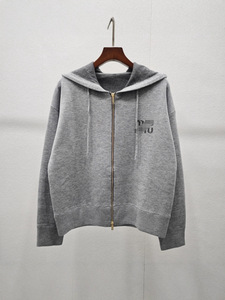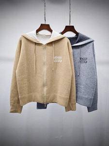 2025早春新款南油miu慵懒休闲双拉链字母提花连帽针织羊毛开衫女
