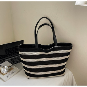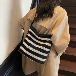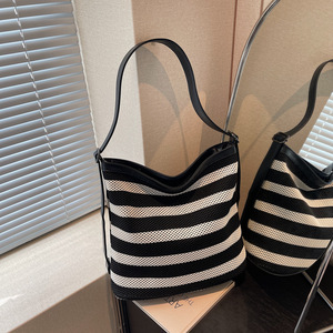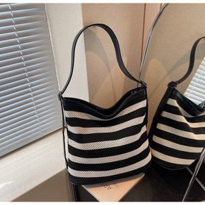 黑白条纹水桶包手提包女大容量大包休闲度假沙滩包百搭单肩托特包
