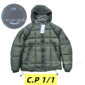 C.P冬季棉服男女镜片街头户外抗寒保暖COMPANY格子拼接连帽面包服
