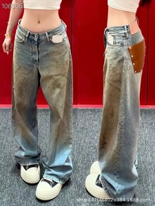 南油AC家25春夏新款牛仔裤涂鸦泼墨做旧牛仔裤宽松阔腿裤小众设计