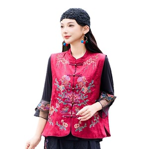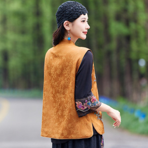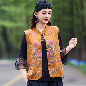 民族风女装马甲2025新款立领盘扣提花缎面重工刺绣花显瘦马夹外套
