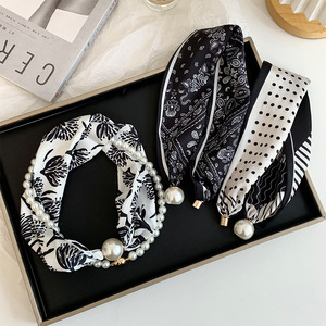 珍珠项链新款百搭国风锁骨链薄款衬衫领巾围脖懒人磁吸扣丝巾长条