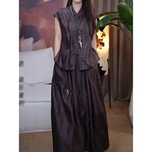 新中式国风时尚裙套装女夏季新款纯色不规则上衣+简约半身裙8340