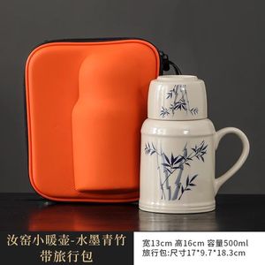 汝窑小暖壶-水墨青竹+茶杯-旅行包 ⚑