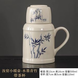 汝窑小暖壶-水墨青竹+茶杯 ⚑