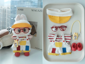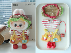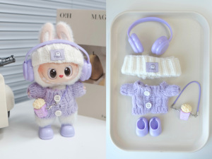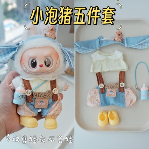 labubu六件套含眼镜鞋子!拉布布搪胶衣服娃衣一代二代三代多巴胺