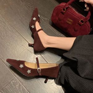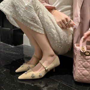 温柔水钻!气质花朵尖头玛丽珍鞋女小众设计感法式单鞋细跟高跟鞋