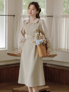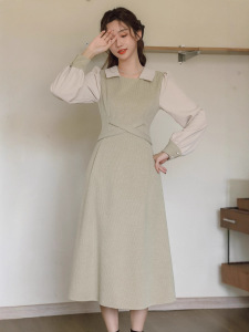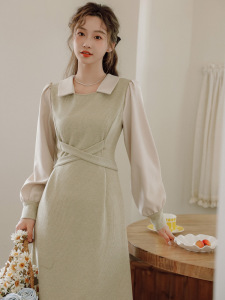 小香赫本风撞色连衣裙女秋冬新款2025高级感气质穿搭收腰显瘦长裙
