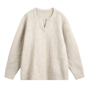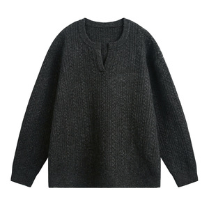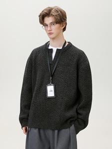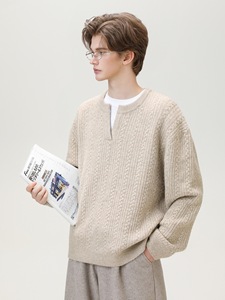慵懒风肌理绞花小v领毛衣男秋冬新款复古宽松潮牌美式针织衫外套