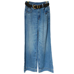1件起批2025秋女装 XRJ4K11B高腰腰带复古阔腿牛仔休闲裤S250666