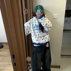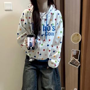 美式彩色波点字母刺绣连帽卫衣女春秋2025新款宽松百搭开衫外套潮