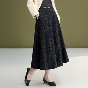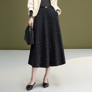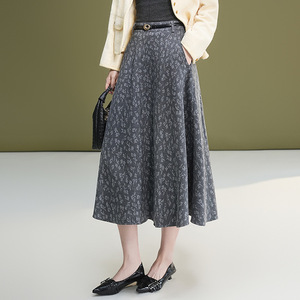 时尚印花A字半身裙女装2025秋季新款高腰半身裙大摆休闲中长裙