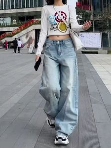 【韩牛】2025秋季新款卡通刺绣弯刀牛仔裤女宽松百搭弯刀阔腿裤