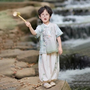 2025新款汉服男童写真旅游夏季儿童国风套装男孩新中式唐装两件套