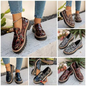 跨境新款大码厚底乐福鞋女英伦风小皮鞋女春秋新款单鞋复古一脚蹬